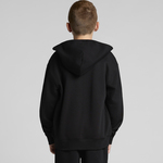 Zip hood, drop shoulder, kangaroo pocket, self-fabric lined hood, no drawcord, YKK zip, sleeve cuff ribbing