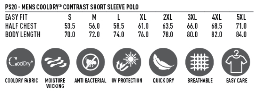 Fabric: CoolDry Mesh 165gsm - 100% Polyester