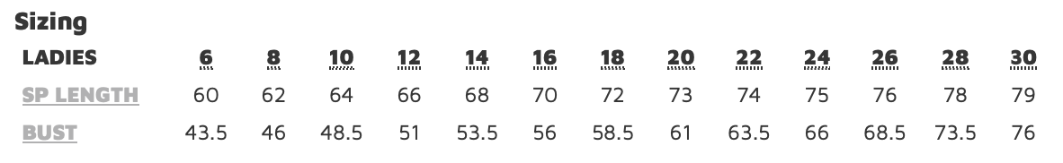 • Sizing Details